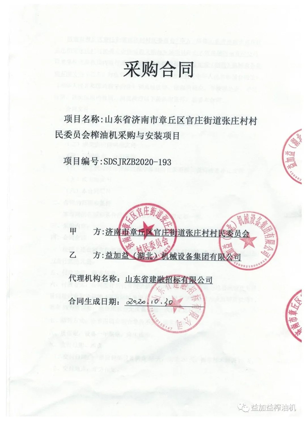 金秋益加益集團(tuán)又中標(biāo)政府采購榨油機(jī)項(xiàng)目